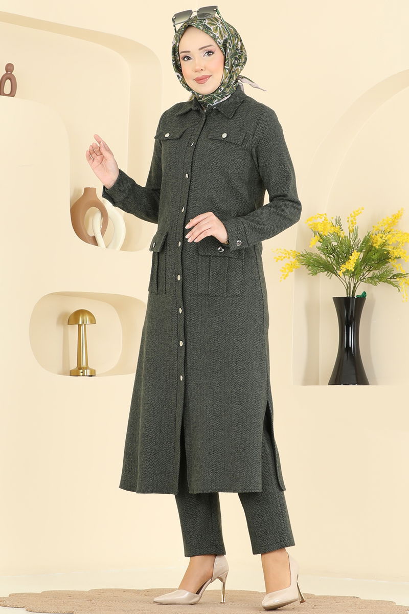 المنتج لديه ياقة القميص. المنتج به أزرار من الأمام. البلوز تحتوي على فتحة. غير مبطنة. الجيب الموجود على الصدر هو ملحق. الجيب متاح. خصر البنطال مرن. قد يكون هناك اختلاف في الدرجة اللونية في المنتج بسبب التقاط الصور الفوتوغرافية.