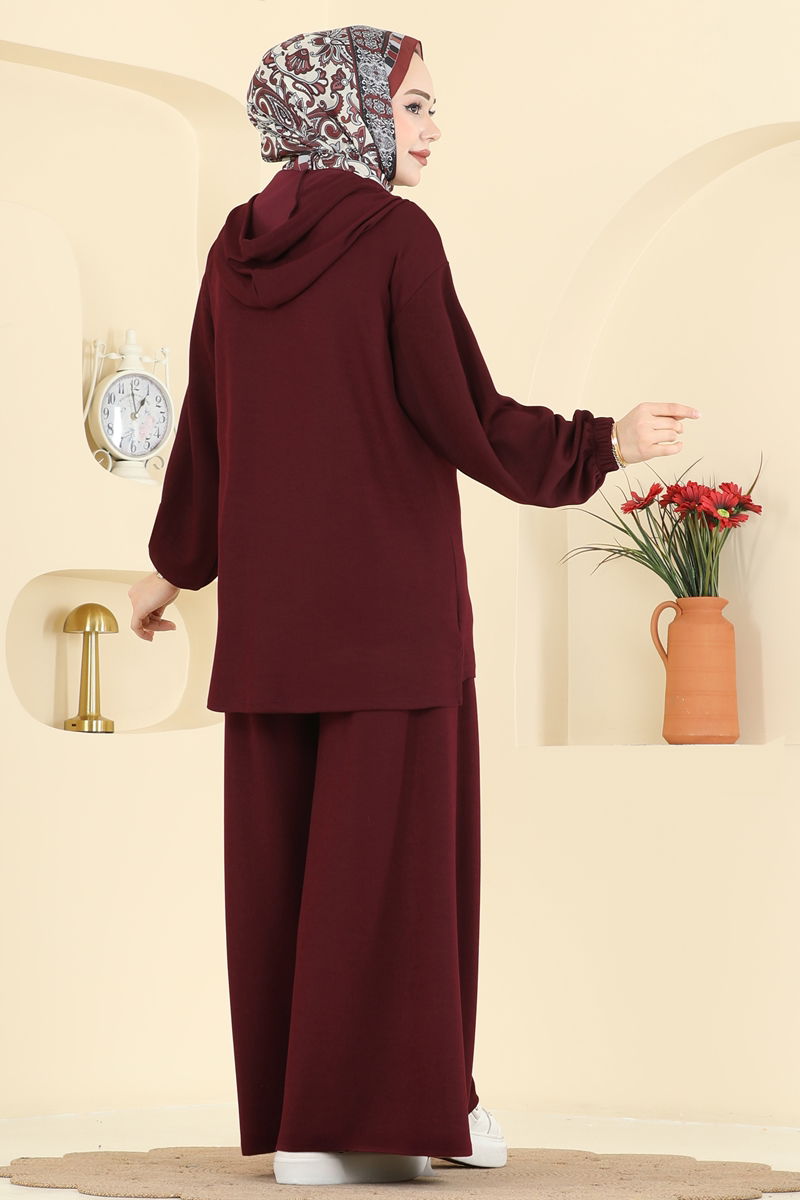 The Hooded Detail Modal set is a stylish and comfortable alternative for modest wear. Suitable for all seasons, this set can be delicately washed at 30 degrees. Made from modal fabric, it offers comfort with its slit details and unlined structure. The front-zippered design, active tie-neck, and trousers with pockets add functionality. Its hooded neckline and elastic waist on the trousers ensure comfort throughout the day. With elasticated cuffs on both the cardigan and trousers, it provides freedom of movement.