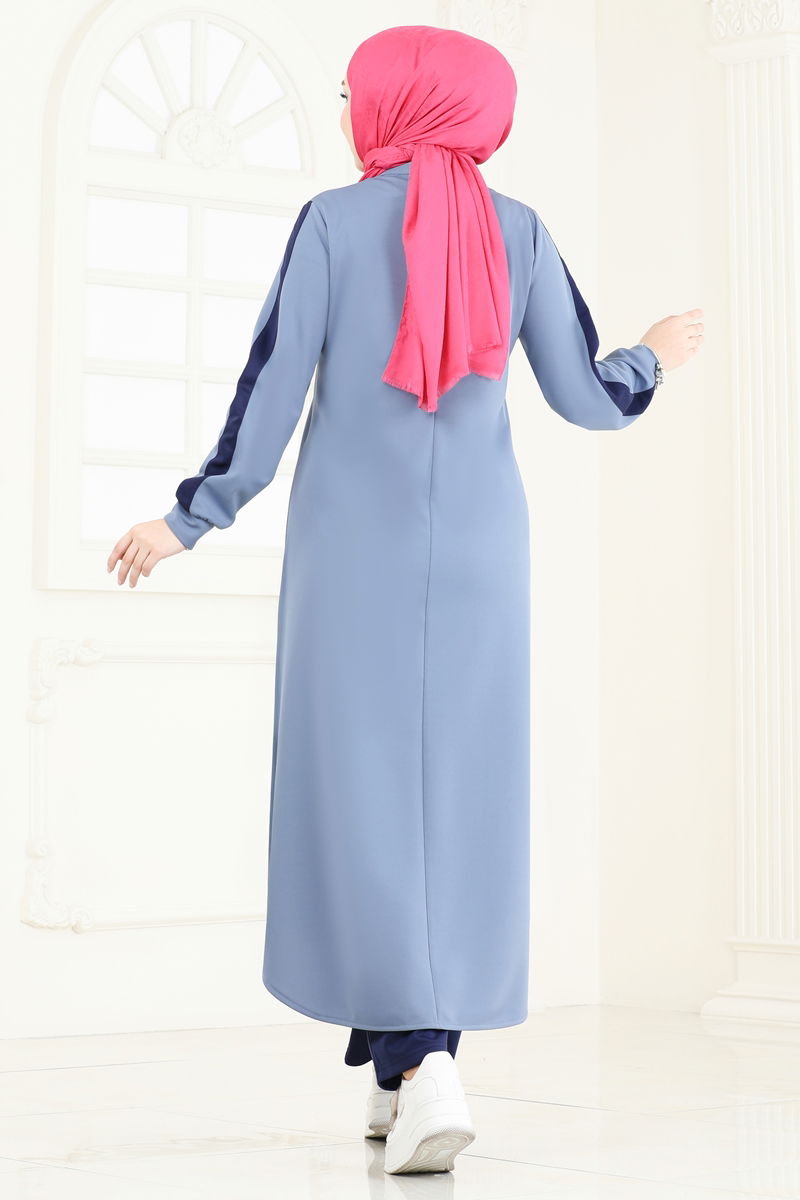 The Buttoned Slit Hijab Suit is a special design that can be comfortably used in all seasons. Crafted from knitted Dabıl fabric suitable for gentle wash at 30 degrees, this chic and modern suit highlights with its half mandarin collar and front button design, while the slit buttons provide an eye-catching accessory detail. Consisting of a tunic and trousers, this unlined set features an elastic waistband trousers. Offering both comfort and elegance, this design will become an indispensable part of your wardrobe.