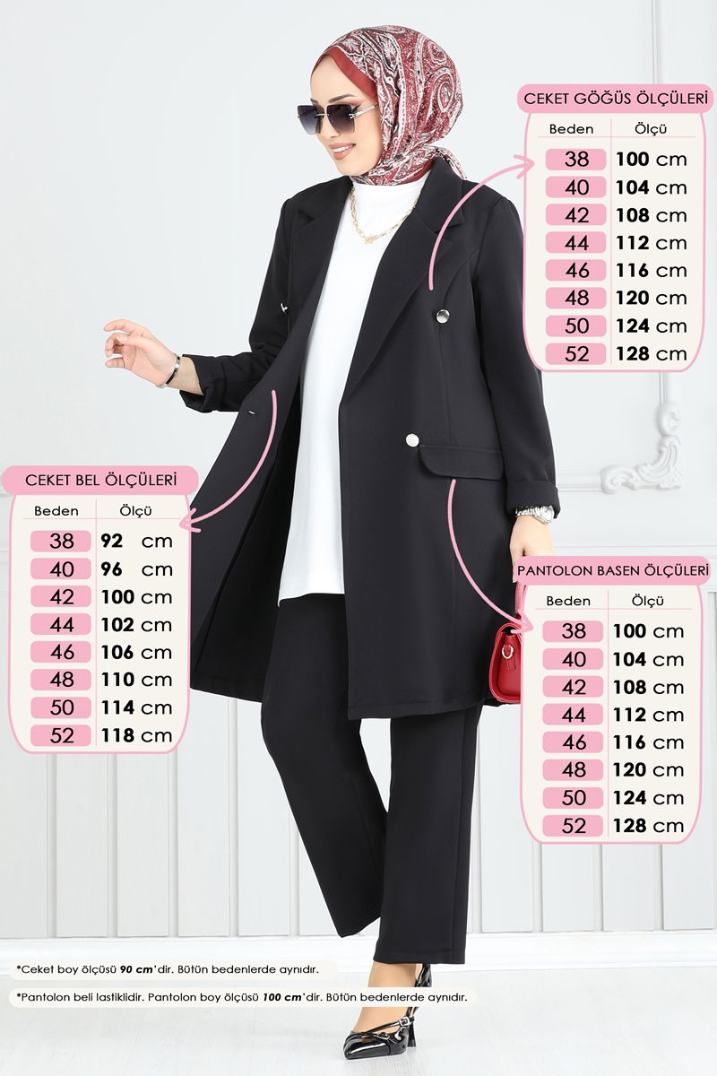 جاكيت مقاسات الحجم (سم)الحجم الصدر الخصر الطول 38 100 92 90 40 104 96 90 42 108 100 90 44 112 102 90 46 116 106 90 48 120 110 90 50 124 114 90 52 128 118 90 بنطلون مقاسات الحجم (سم)الحجم الورك الطول 38 100 100 40 104 100 42 108 100 44 112 100 46 116 100 48 120 100 50 124 100 52 128 100 الوزن(كجم):0.63 -