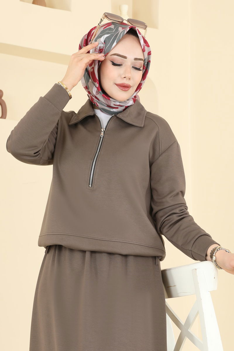 Product Feature : It is a new season hijab fashion product. There is a half zipper that can be used from the front. The product has a Shirt collar. Unlined. There are adjustable laces on the right and left hem of the product. The skirt waist is elastic. There may be a tonal difference in the product due to concept photo shoots.