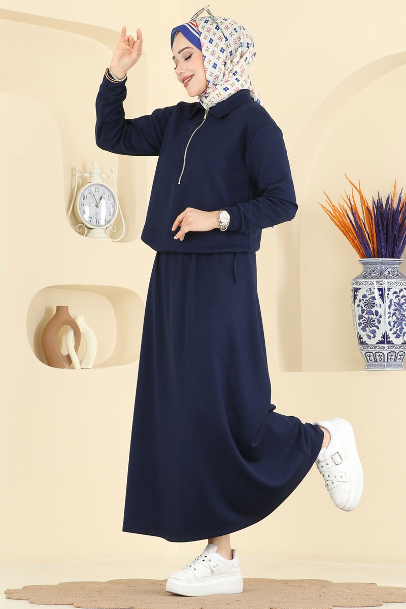 Product Feature : It is a new season hijab fashion product. There is a half zipper that can be used from the front. The product has a Shirt collar. Unlined. There are adjustable laces on the right and left hem of the product. The skirt waist is elastic. There may be a tonal difference in the product due to concept photo shoots.