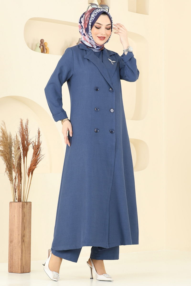 Product Feature : It is a new season hijab fashion product. The inner blouse is worn over the head. The cardigan has buttons that can be used from the front. The product has a Double-breasted collar. The product has From the front buttons. Unlined. The inner blouse is sleeveless. Accessories are not included. The waist of the trousers is elastic. There may be a tonal difference in the product due to concept photo shoots.