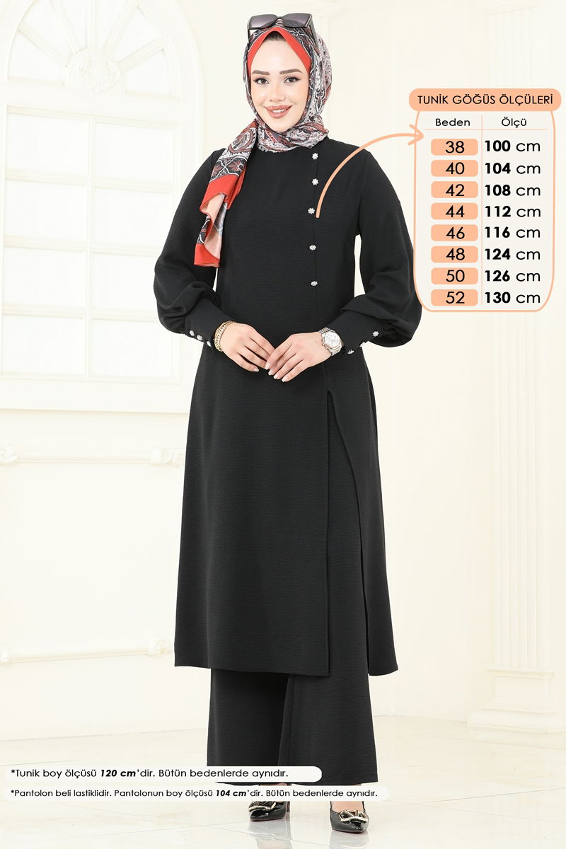 المنتج لديه ياقة دائرية. البلوز تحتوي على فتحة. غير مبطنة. المنتج به سحاب في جزء من الخلف. الأزرار هي إكسسوارات. خصر البنطال مرن. أزرار الكفة نشطة. قد يكون هناك اختلاف في الدرجة اللونية في المنتج بسبب التقاط الصور الفوتوغرافية.
