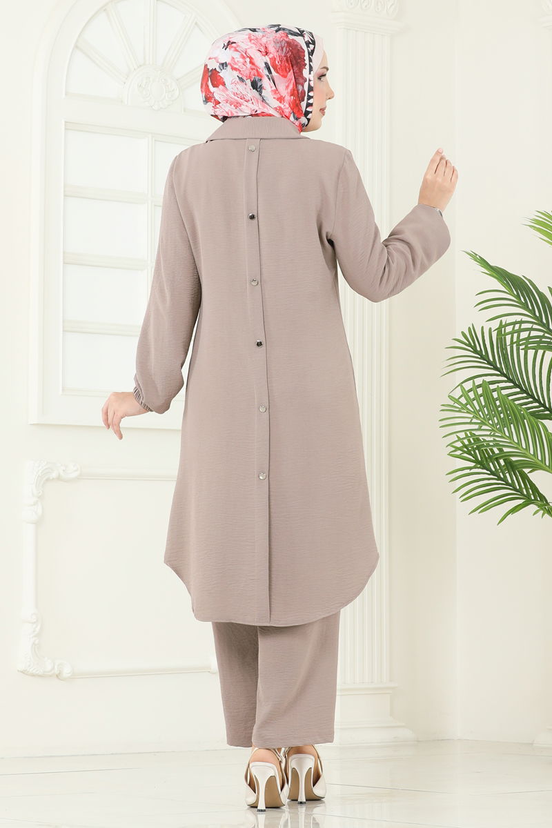 يوجد زر يمكن استخدامه من الخلف. المنتج لديه ياقة القميص. المنتج به أزرار من الأمام. الازرار الموجود بالفتحات اكسسوار. غير مبطنة. تفاصيل النمط مطبوعة. يتميز الفستان الداخلي بأكمام طويلة. تفاصيل الجيب من الملحقات. خصر البنطال مرن. السوار مطاطي. قد يكون هناك اختلاف في الدرجة اللونية في المنتج بسبب التقاط الصور الفوتوغرافية.