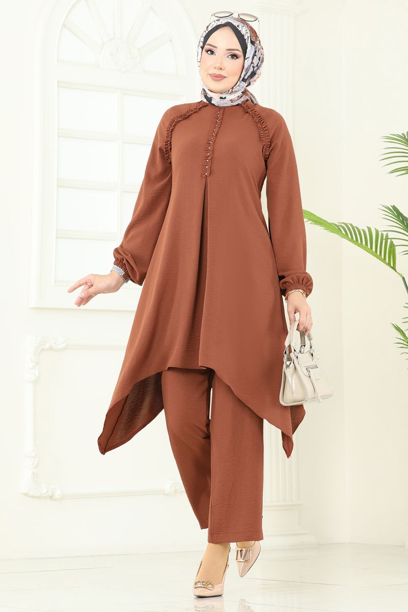 Product Feature : It is a new season hijab fashion product. It has a button that can be used from the back. The product has a Cycling collar. Unlined. The stones are glued. The waist of the trousers is elastic. The cuff is rubberized. There may be a tonal difference in the product due to concept photo shoots.