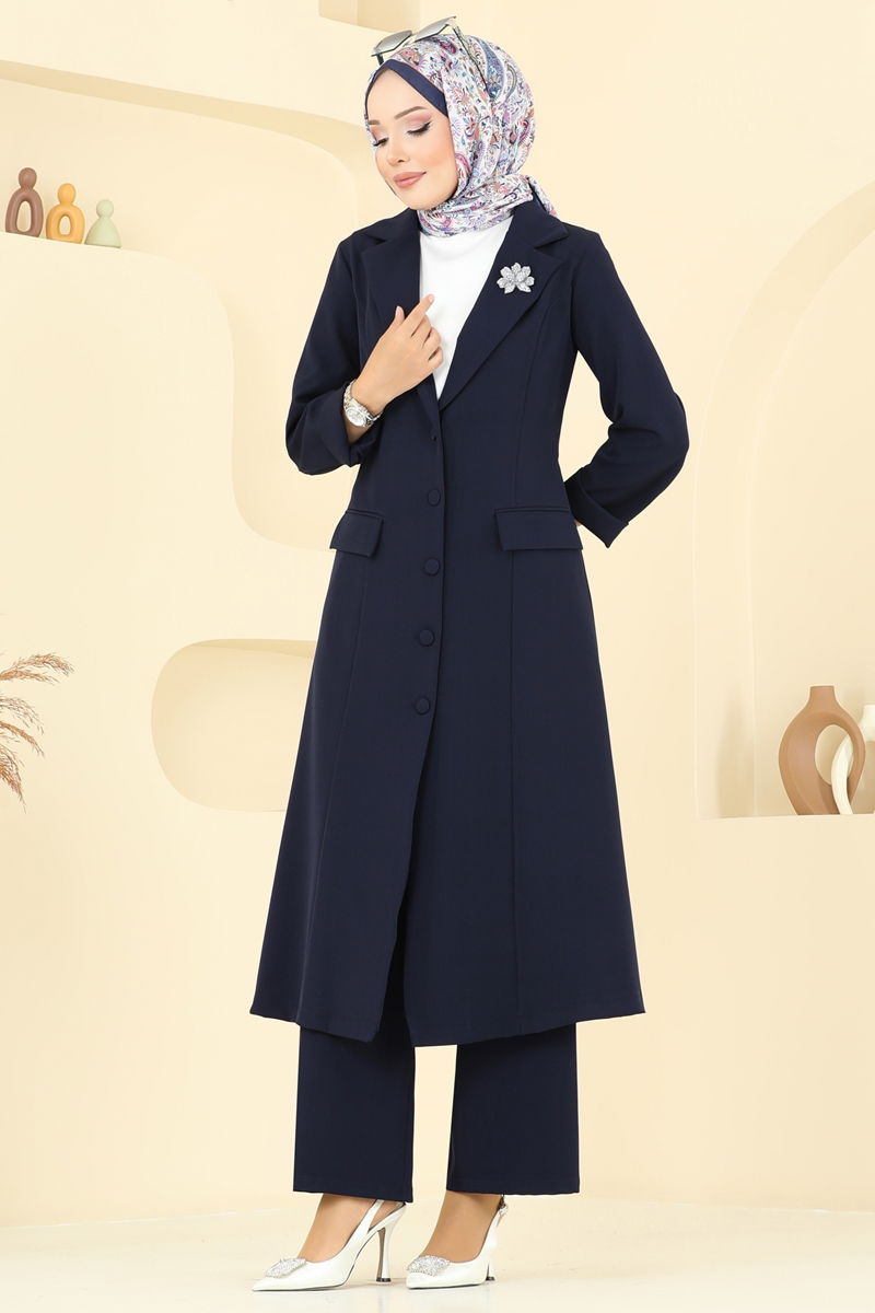 المنتج لديه ياقة مفتوحة. المنتج به أزرار من الأمام. غير مبطنة. الحزام متضمن، ،يمكن استخدامها حسب الرغبة تفاصيل الجيب عبارة عن إكسسوارات. خصر البنطال مرن. قد يكون هناك اختلاف في الدرجة اللونية في المنتج بسبب التقاط الصور الفوتوغرافية.