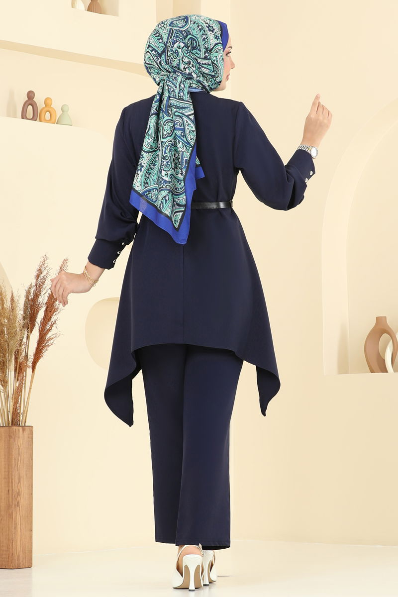 المنتج لديه ياقة دائرية. المنتج به أزرار من الخلف. غير مبطنة. الحزام متضمن، ،يمكن استخدامها حسب الرغبة خصر البنطال مرن. قد يكون هناك اختلاف في الدرجة اللونية في المنتج بسبب التقاط الصور الفوتوغرافية.