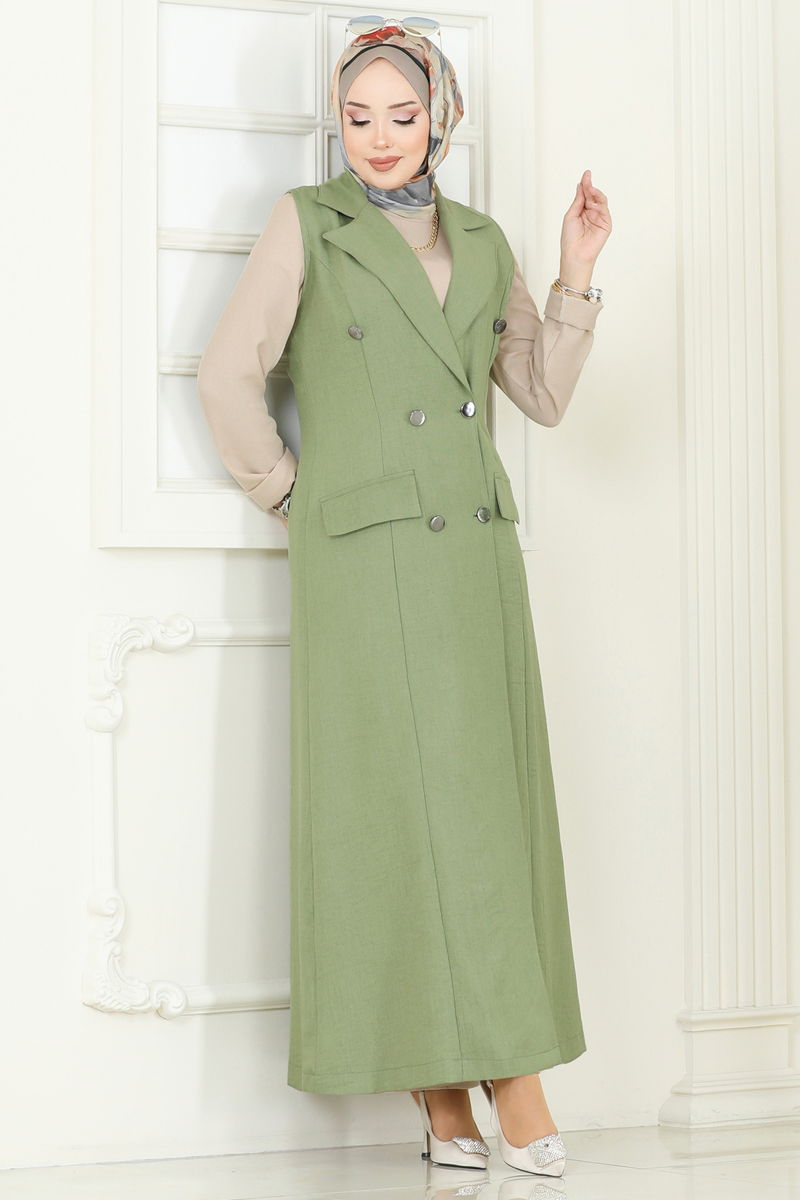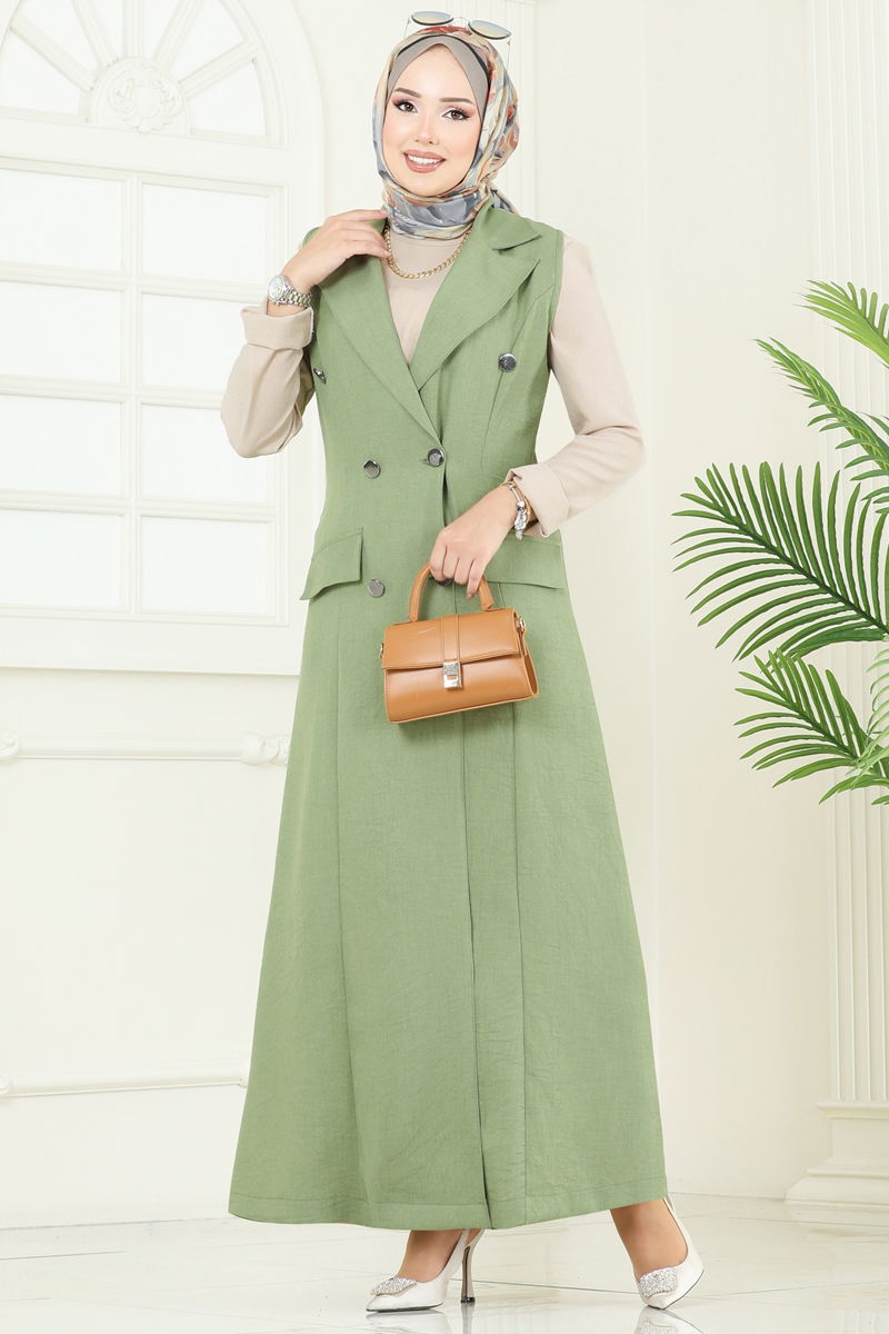 Product Feature : It is a new season hijab fashion product. The product has a Double-breasted collar. The product has half front buttons. Unlined. Pocket detail is an accessory. The waist of the trousers is elastic. There may be a tonal difference in the product due to concept photo shoots.