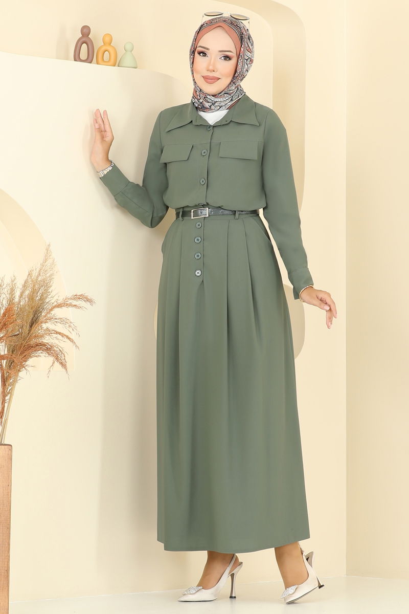 المنتج لديه ياقة القميص. المنتج به أزرار من الأمام. غير مبطنة. الحزام متضمن، ،يمكن استخدامها حسب الرغبة تفاصيل الجيب من الملحقات. يتوفر زر على خصر التنورة. أزرار الكفة نشطة. قد يكون هناك اختلاف في الدرجة اللونية في المنتج بسبب التقاط الصور الفوتوغرافية.