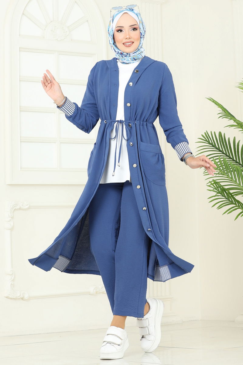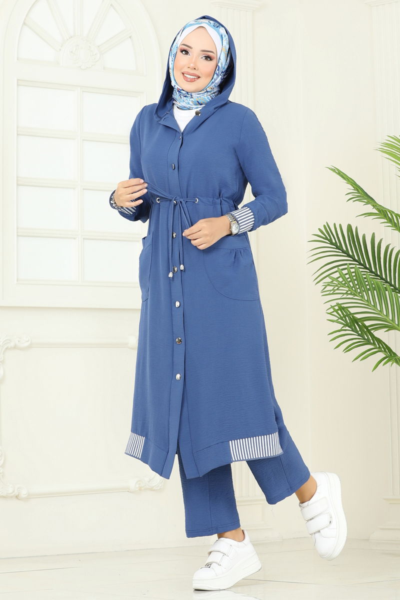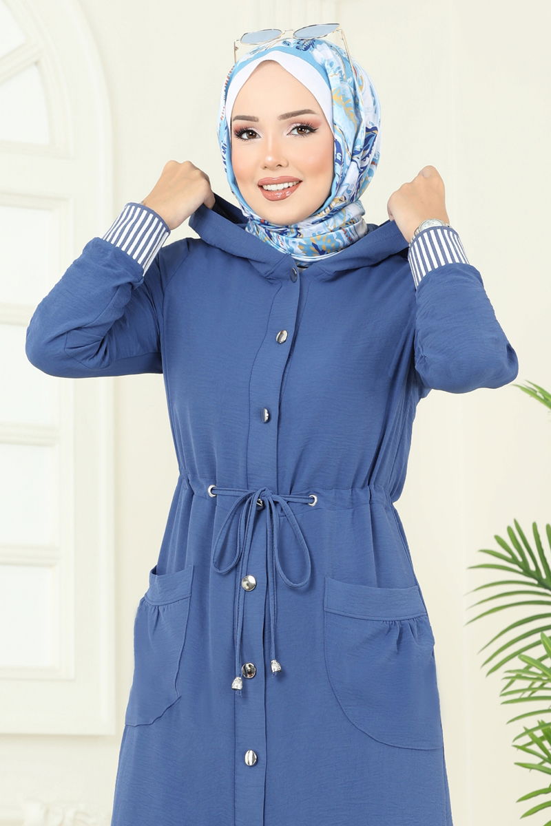 يتميز بخصر ذو أربطة. المنتج لديه ياقة مع قبعة. المنتج به أزرار من الأمام. غير مبطنة. الجيب متاح. خصر البنطال مرن. قد يكون هناك اختلاف في الدرجة اللونية في المنتج بسبب التقاط الصور الفوتوغرافية.