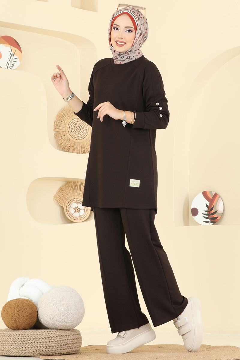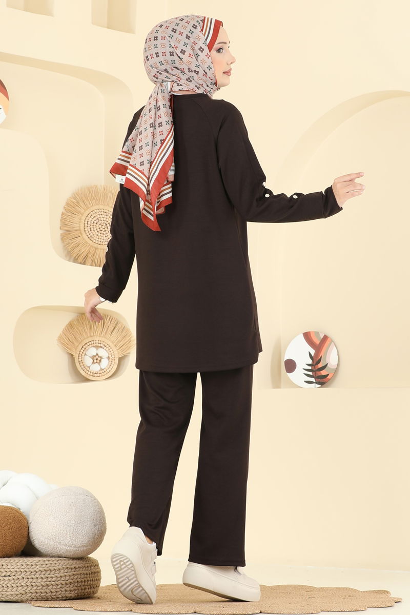 Discover the Cufflink Detailed Modal Suit, COMBINE model, a special design hijab product that offers comfort and elegance together in all four seasons. This suit, which can be washed at 30 degrees due to its delicate structure, is made of modal fabric. It prioritizes comfort with its bicycle neck style and lining-free structure. It enhances visual integrity with chic buttons and sewn arm detail. The elastic waist of the trousers ensures maximum comfort. Comprising a tunic and trousers, stand out in any setting with your stylish appearance.
