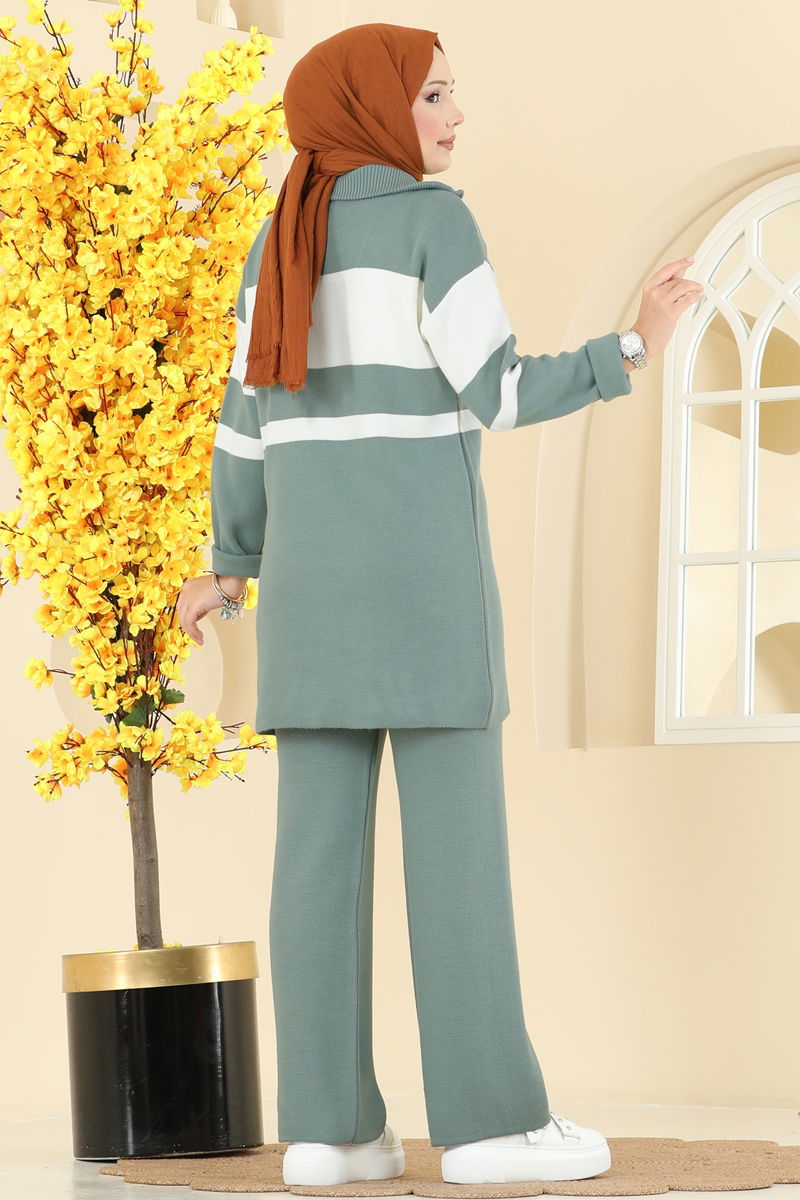 This stylish and comfortable Half Zip Knit Suit offers a modern touch to modest fashion. Ideal for autumn and winter, this suit can be machine washed gently at 30 degrees, ensuring practical usage. Made from high-quality knit fabric, this suit features an unlined upright collar top and trousers with an elastic waist, providing comfort throughout the day. Available in standard sizes (36-38-40-42), this suit is perfect for those who seek both elegance and comfort.