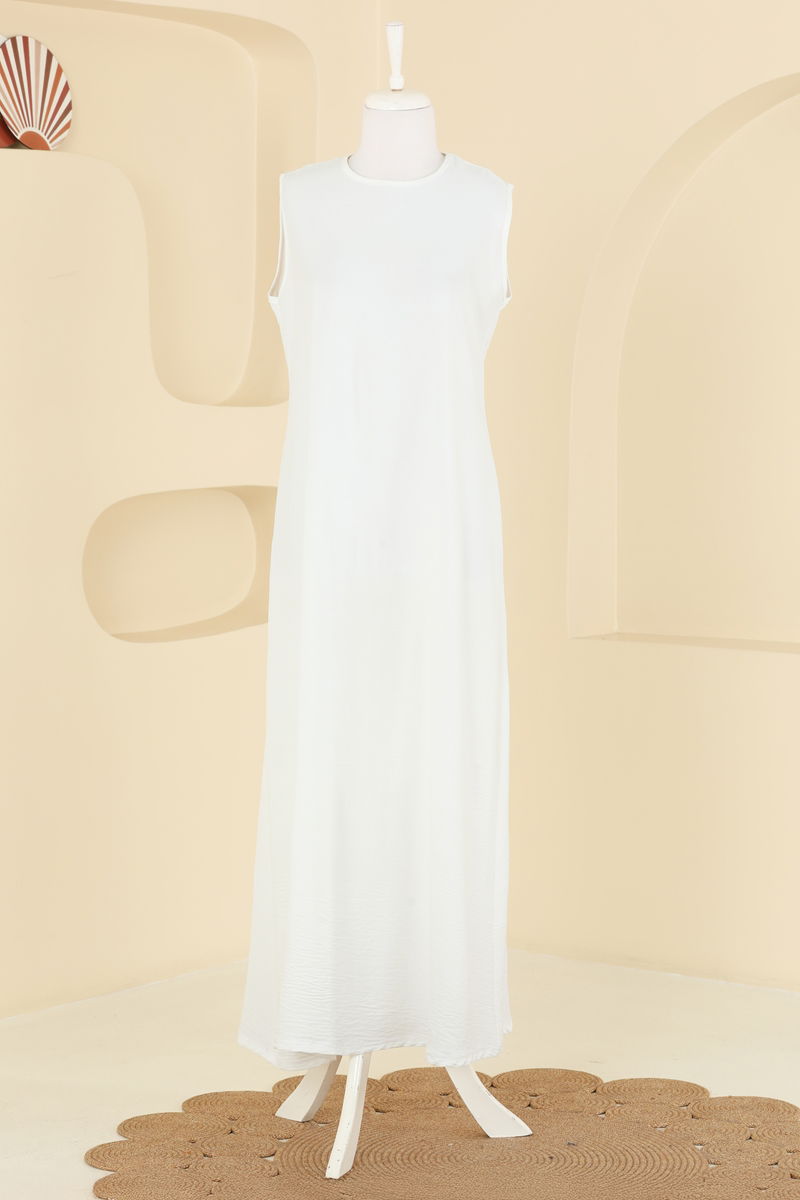 يتم ارتداء المنتج على الرأس. المنتج لديه ياقة دائرية. البلوز تحتوي على فتحة. غير مبطنة. الفستان الداخلب بلا اكمام .أزرار الكتّافات على الأكمام قابلة للاستخدام قد يكون هناك اختلاف في الدرجة اللونية في المنتج بسبب التقاط الصور الفوتوغرافية.