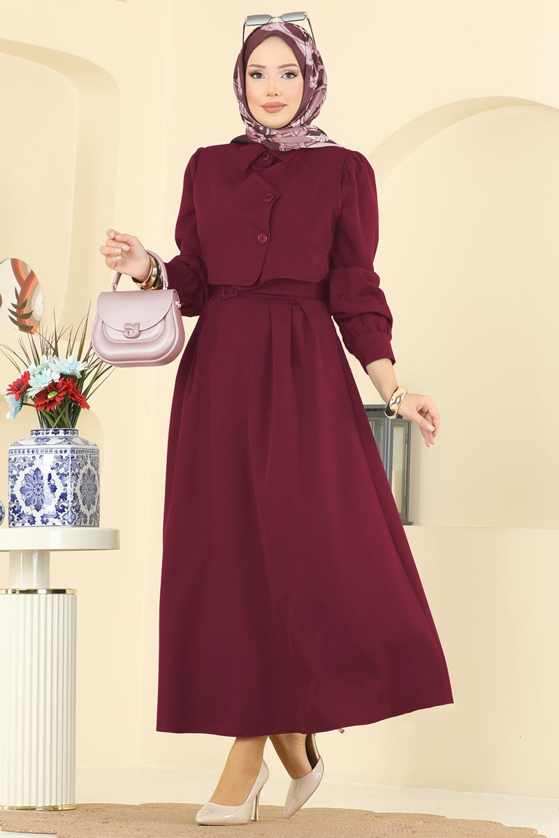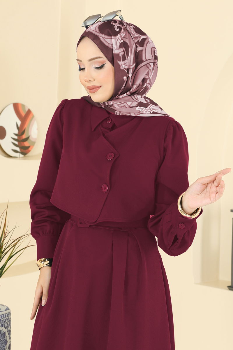 تم خياطة تفصيل البوليرو على المنتج. المنتج لديه ياقة القميص. .لا يوجد جسر حزام في المنتج الأزرار نشطة. الحزام متضمن، ،يمكن استخدامها حسب الرغبة تتميز التنورة بسحّاب خلفي للإغلاق عند الخصر. أزرار الكفة نشطة. قد يكون هناك اختلاف في الدرجة اللونية في المنتج بسبب التقاط الصور الفوتوغرافية.