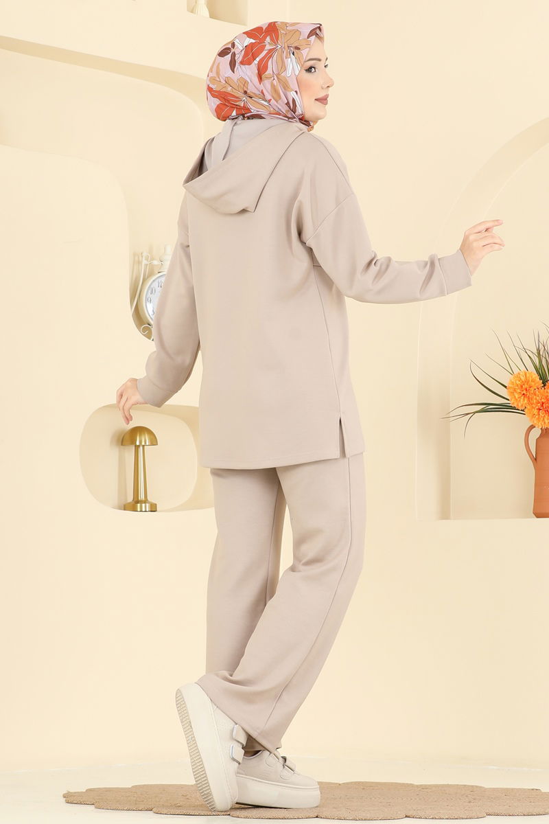 Product Feature : It is a new season hijab fashion product. The neck drawstring is active. The product has a Hooded collar. Unlined. The hood is sewn to the product. The waist of the trousers is elastic. There may be a tonal difference in the product due to concept photo shoots.