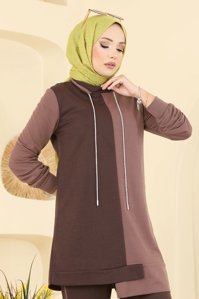 The Lace Detail Stone Suit KOMBİN model is a stylish hijab outfit suitable for all seasons. Its 30-degree washable feature ensures durability and care for delicate items. Made from vortex fabric, this set features a semi-high collar design that stands out. With its unlined structure, stone detailed laces, and an elastic waistband, it offers both comfort and elegance.
