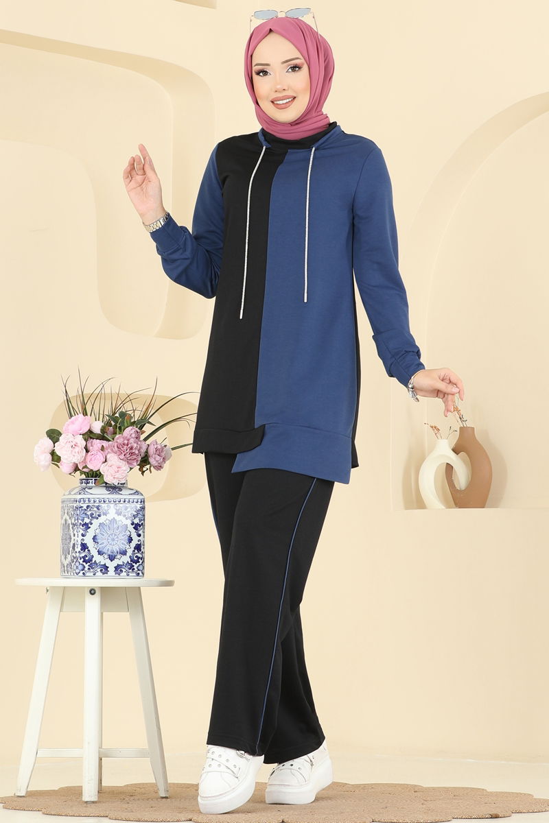 The Lace Detail Stone Suit KOMBİN model is a stylish hijab outfit suitable for all seasons. Its 30-degree washable feature ensures durability and care for delicate items. Made from vortex fabric, this set features a semi-high collar design that stands out. With its unlined structure, stone detailed laces, and an elastic waistband, it offers both comfort and elegance.