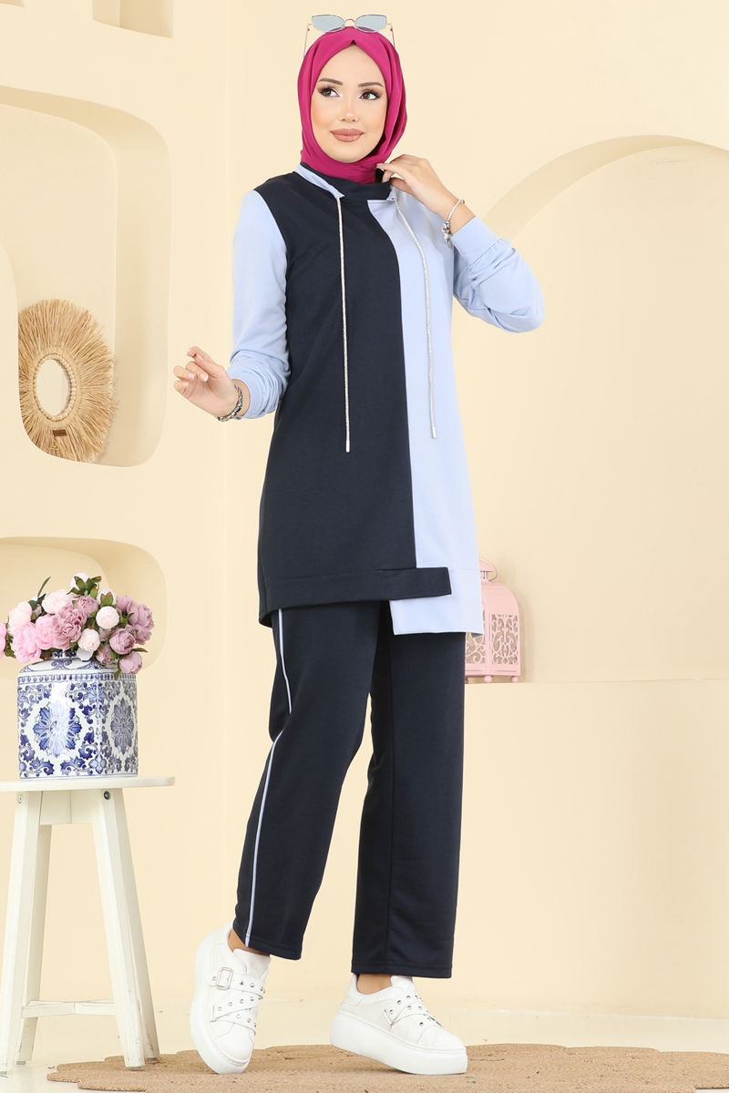 The Lace Detail Stone Suit KOMBİN model is a stylish hijab outfit suitable for all seasons. Its 30-degree washable feature ensures durability and care for delicate items. Made from vortex fabric, this set features a semi-high collar design that stands out. With its unlined structure, stone detailed laces, and an elastic waistband, it offers both comfort and elegance.