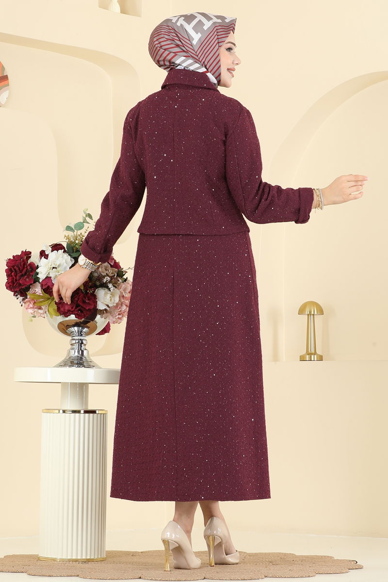 Elegant and chic, the Lace-Collared Tweed Suit is an ideal choice for modest attire. Suitable for use in autumn and winter, this attire is comfortably maintained with a 30-degree gentle wash. The tweed fabric provides a delicate touch while offering durability. Featuring a shirt collar and front button details, it successfully blends classic and modern styles. The included lace can be optionally removed or used, allowing for versatile styling. The zippered waist on the skirt facilitates easy wear, while pocket details on the jacket and skirt complete the sophisticated look.