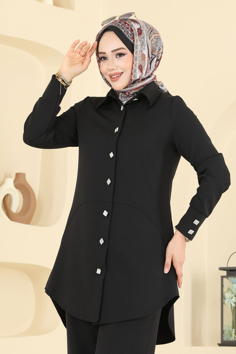 Product Feature : It is a new season hijab fashion product. The product has a Shirt collar. The product has From the front buttons. Unlined. Blouse is not included. Sample combination is made with the blouse to show the intended use of the product. The waist of the trousers is elastic. Cuff buttons are accessories. There may be a tonal difference in the product due to concept photo shoots.