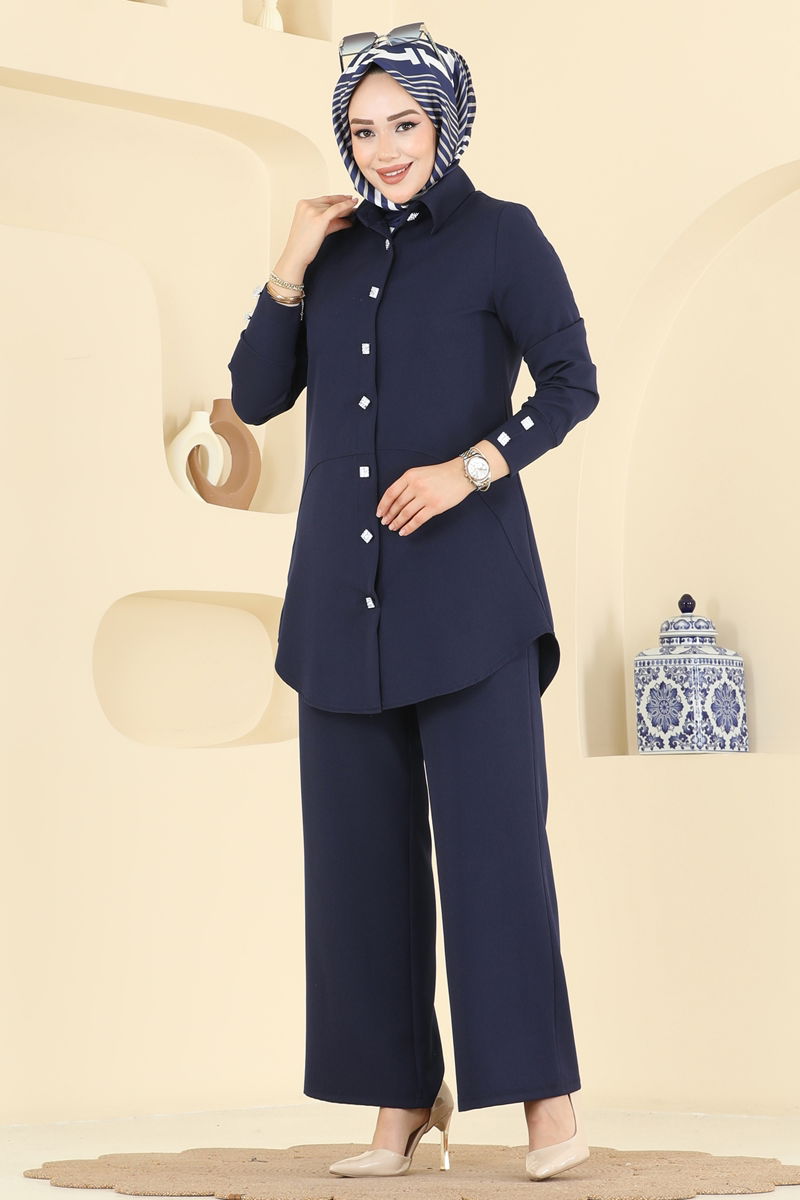 Product Feature : It is a new season hijab fashion product. The product has a Shirt collar. The product has From the front buttons. Unlined. Blouse is not included. Sample combination is made with the blouse to show the intended use of the product. The waist of the trousers is elastic. Cuff buttons are accessories. There may be a tonal difference in the product due to concept photo shoots.