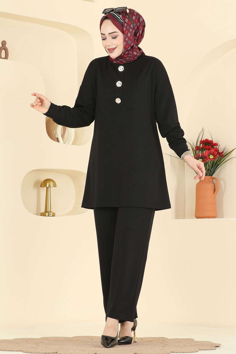 Elegant and comfortable, the Buttoned Modal Suit is specially designed for modest wear. Enjoy it throughout all seasons. The soft texture and lightness of modal fabric ensure comfort all day long. Washable at 30 degrees on delicate cycle, this suit offers long-lasting wear. The decorative buttons on the tunic and the elastic waistband of the trousers combine both style and comfort. Whether for daily wear or special occasions, express your style with the Chic Buttoned Modal Suit.