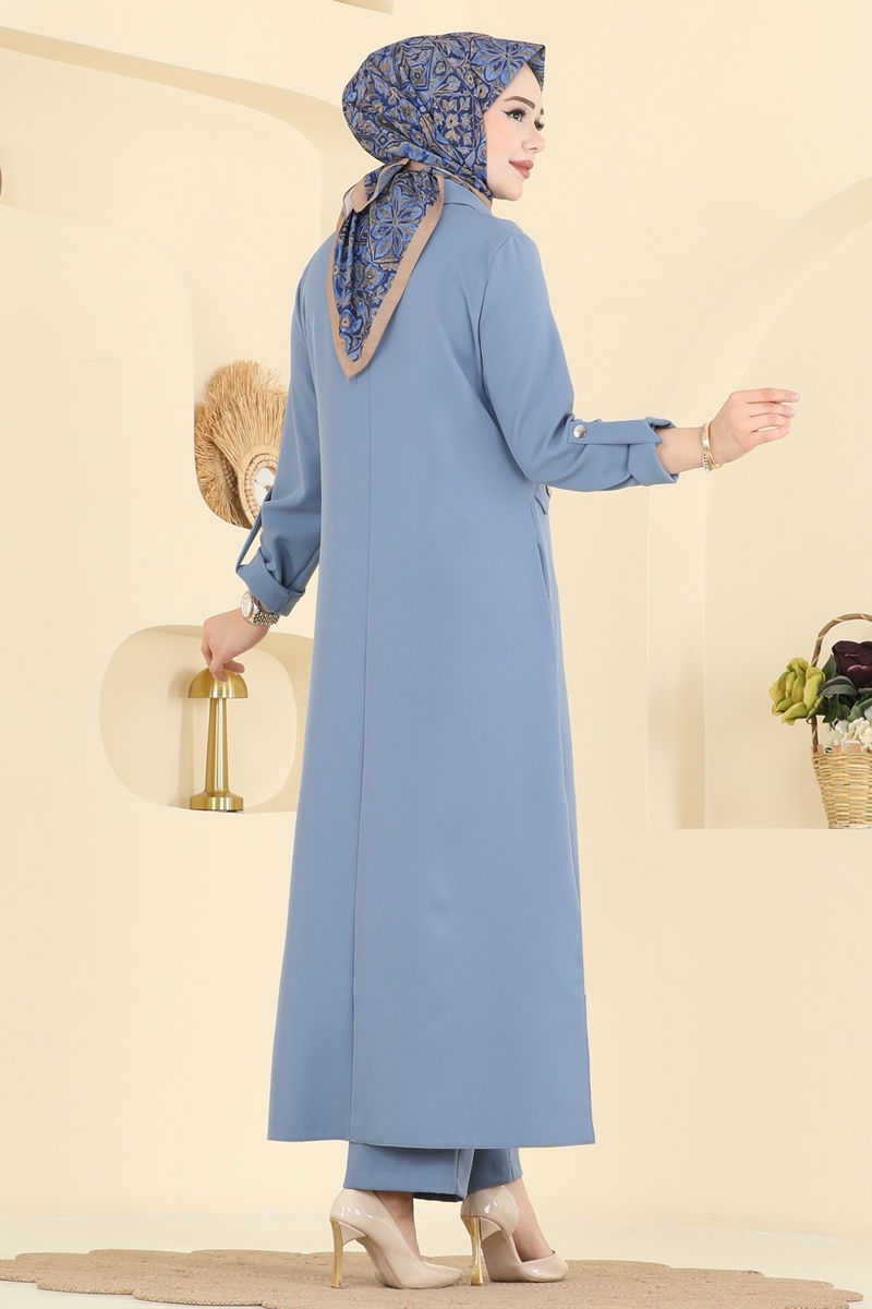 الأزرار الأمامية المتوفرة والأزرار المخفية المتوفرة المنتج لديه ياقة القميص. غير مبطنة. المنتج يحتوي على حزام خصر مُخاط. تفاصيل الجيب من الملحقات. خصر البنطال مرن. .أزرار الكتّافات على الأكمام قابلة للاستخدام قد يكون هناك اختلاف في الدرجة اللونية في المنتج بسبب التقاط الصور الفوتوغرافية.