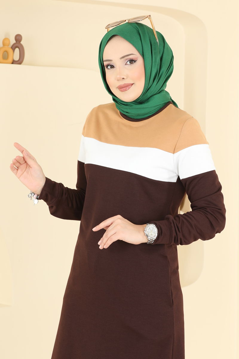 Our Garni Detailed Two Thread Suit, model hijab product, can be comfortably used in all seasons. Offering comfort with a crew neck and an elastic waistband on the pants, this unlined product should be washed gently at 30 degrees. The tunic and pants style is ideal for those seeking both elegance and comfort. (The product worn by the model is size 38.)