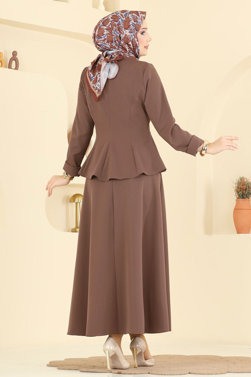 The Collared Dabıl Suit COMBO is a stylish and modern modest wear product that stands out with its design. Suitable for all seasons, this combo is made from special Dabıl fabric which ensures durability. The product can be washed at 30 degrees on a gentle cycle and offers practicality with its design features. With a semi-Mao collar and front button closure, this combo is light and comfortable due to its unlined structure. The set includes a blouse and a skirt with a zippered waist, and the lace details enhance the elegance.