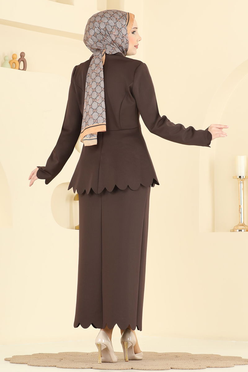 Elevate your style with the Gold Buttoned Scuba Suit! Ideal for all-season wear, this hijab suit combines the soft and stretchy fabric of scuba material with day-long comfort. It features an elegant semi-standing collar and a convenient concealed zipper at the back. The stitched waist design on the tunic and an elastic waist on the skirt ensure a contemporary look, while the decorative buttons add a sophisticated touch. It's washable at 30 degrees on a gentle cycle, ensuring durability. A must-have in every fashion-conscious woman's wardrobe, this suit is perfect for both everyday wear and special occasions!