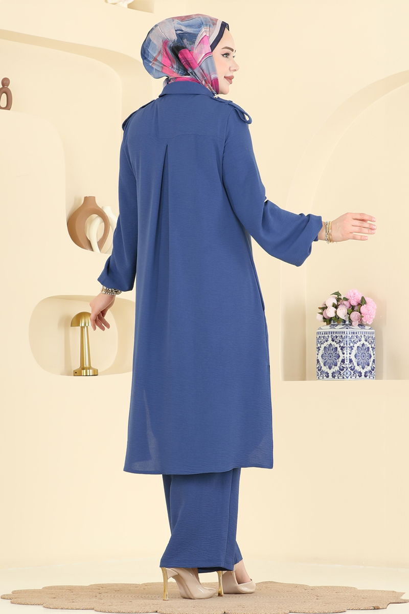 المنتج لديه ياقة القميص. المنتج به أزرار من الأمام. البلوز تحتوي على فتحة. غير مبطنة. تفاصيل الجيب من الملحقات. خصر البنطال مرن. السوار مطاطي. قد يكون هناك اختلاف في الدرجة اللونية في المنتج بسبب التقاط الصور الفوتوغرافية.