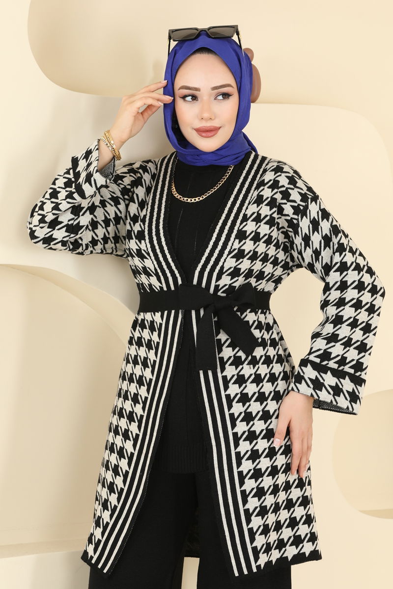 Specially designed for the Autumn and Winter months, the Belt-Detailed Triple Set stands out with its elegant and modern design. This hijab set offers a comfortable and stylish look, made from knit fabric and suitable for delicate washing at 30 degrees. The product features a turtleneck collar and is unlined, presented in a standard size. The inner blouse is sleeveless, the sleeves are detailed with sewn fold cuffs. The belt designed to prevent waviness is optional and complements the outfit. The elastic waist of the trousers ensures comfort. This elegant set is perfect for both everyday wear and special occasions.