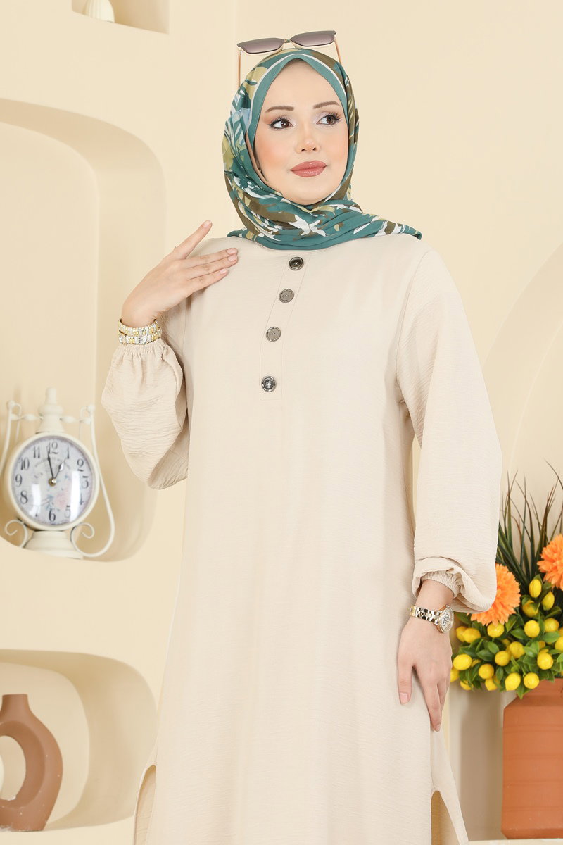 Product Feature : It is a new season hijab fashion product. The product has a Cycling collar. The product has From the front buttons. The tunic has a side slash.. The waist of the trousers is elastic. The cuff is rubberized. There may be a tonal difference in the product due to concept photo shoots.