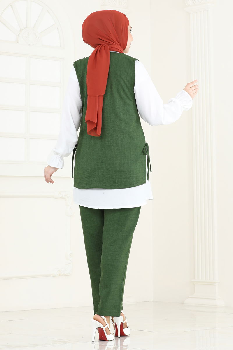 المنتج لديه ياقة القميص. المنتج به أزرار من الأمام. يحتوي على فتحة. غير مبطنة. تم اضافة اللؤلؤ بطريقة التعبئة التفاصيل الحجرية محفورة. المنتج بأربطة. خصر البنطال مرن. السوار مطاطي. قد يكون هناك اختلاف في الدرجة اللونية في المنتج بسبب التقاط الصور الفوتوغرافية.