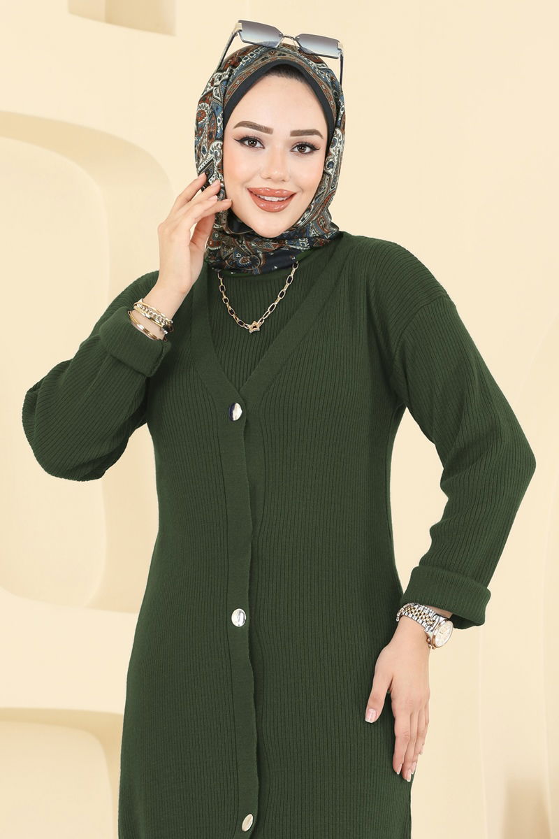 توجد أزرار متوفرة من الأمام. .يتكوّن المنتج من قطعتين غير مبطنة. الفستان الداخلب بلا اكمام لا يتم ربطهما معاً. يمكن استخدام الثوب الداخلي أيضاً بشكل منفصل. قد يكون هناك اختلاف في الدرجة اللونية في المنتج بسبب التقاط الصور الفوتوغرافية.
