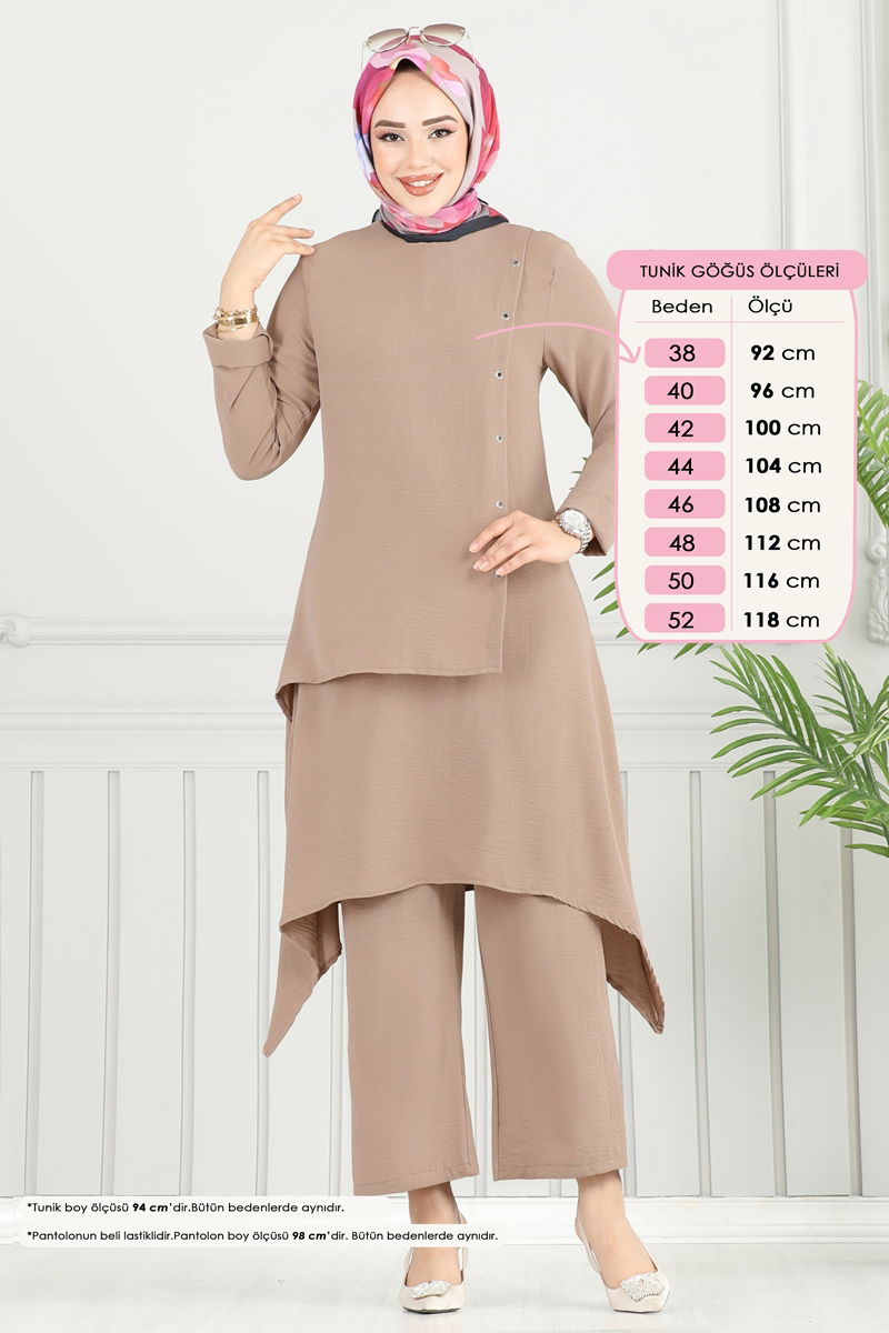 بلوز مقاسات الحجم (سم)الحجم الصدر الطول 38 92 94 40 96 94 42 100 94 44 104 94 46 108 94 48 112 94 50 116 94 52 118 94 بنطلون مقاسات الحجم (سم)الحجم الطول 38 98 40 98 42 98 44 98 46 98 48 98 50 98 52 98 الوزن(كجم):0.61 -