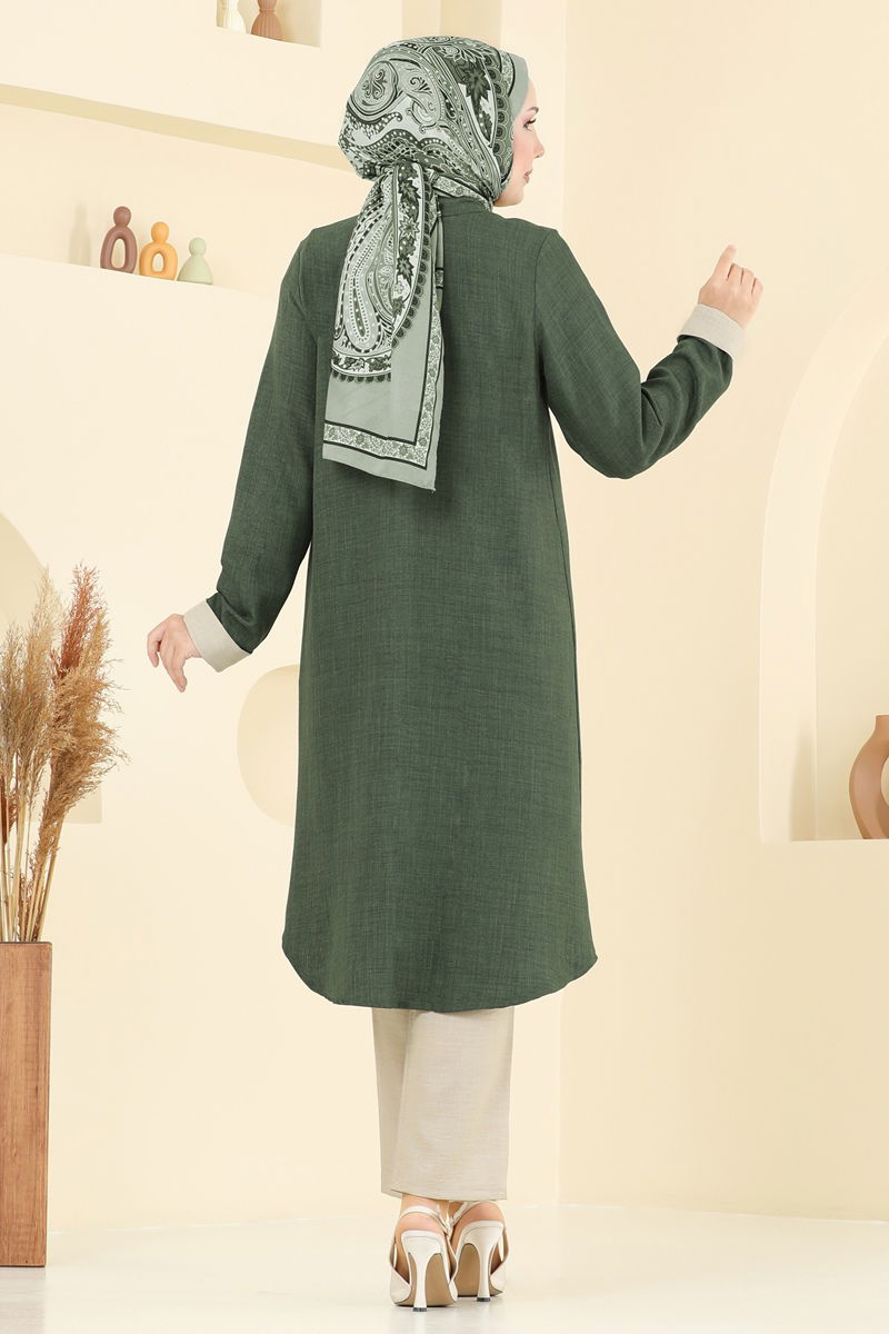 Product Feature : It is a new season hijab fashion product. It has a button that can be used from the back. The product has a Cycling collar. Unlined. The inner tunic is sleeveless. Accessories are not included. The waist of the trousers is elastic. There may be a tonal difference in the product due to concept photo shoots.