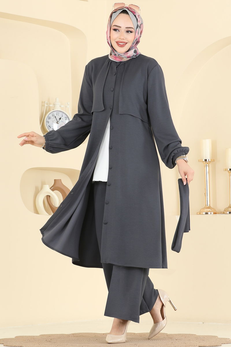 Product Feature : It is a new season hijab fashion product. The product has a Half Judge collar. The product has From the front buttons. Unlined. Belt included, optional not available. The waist of the trousers is elastic. The cuff is rubberized. There may be a tonal difference in the product due to concept photo shoots.