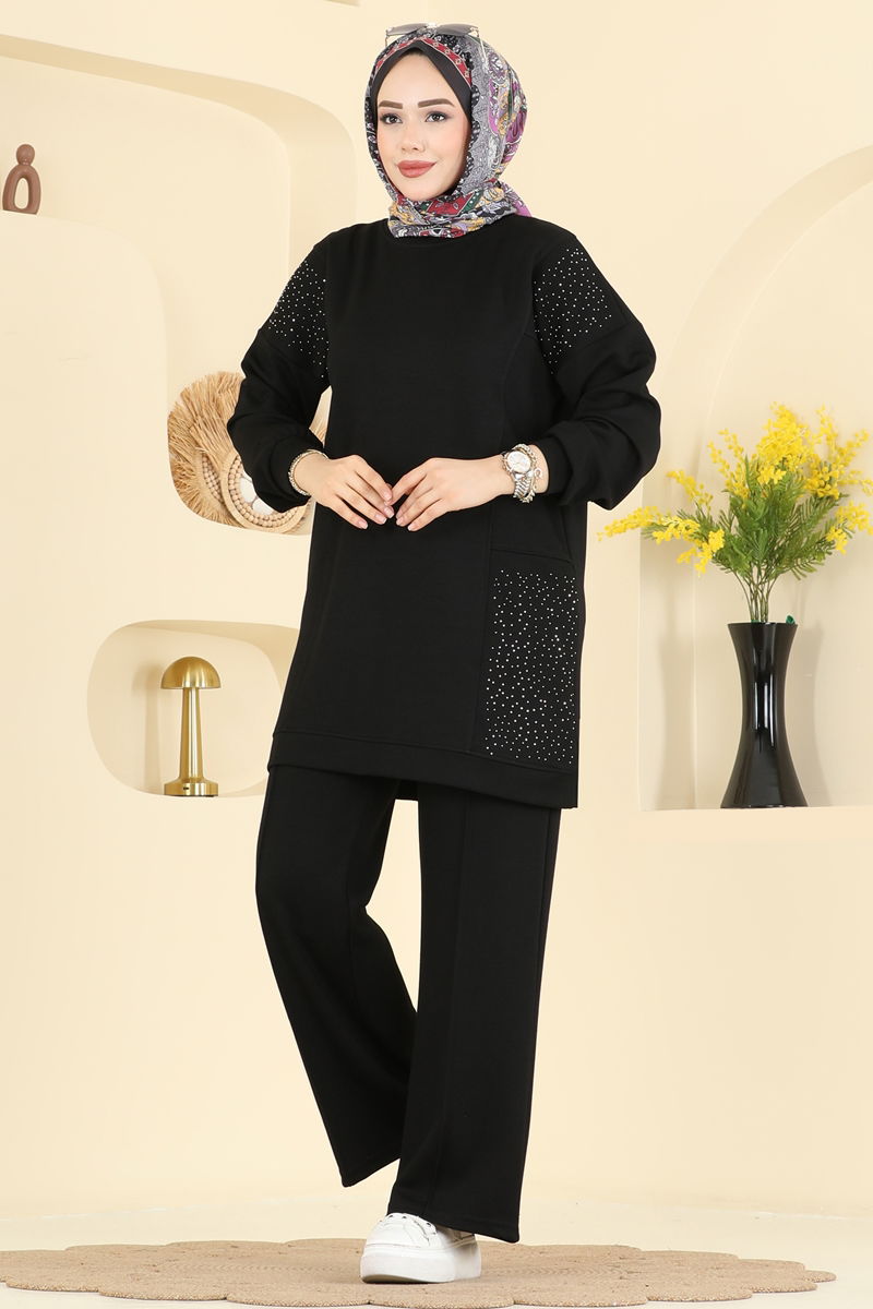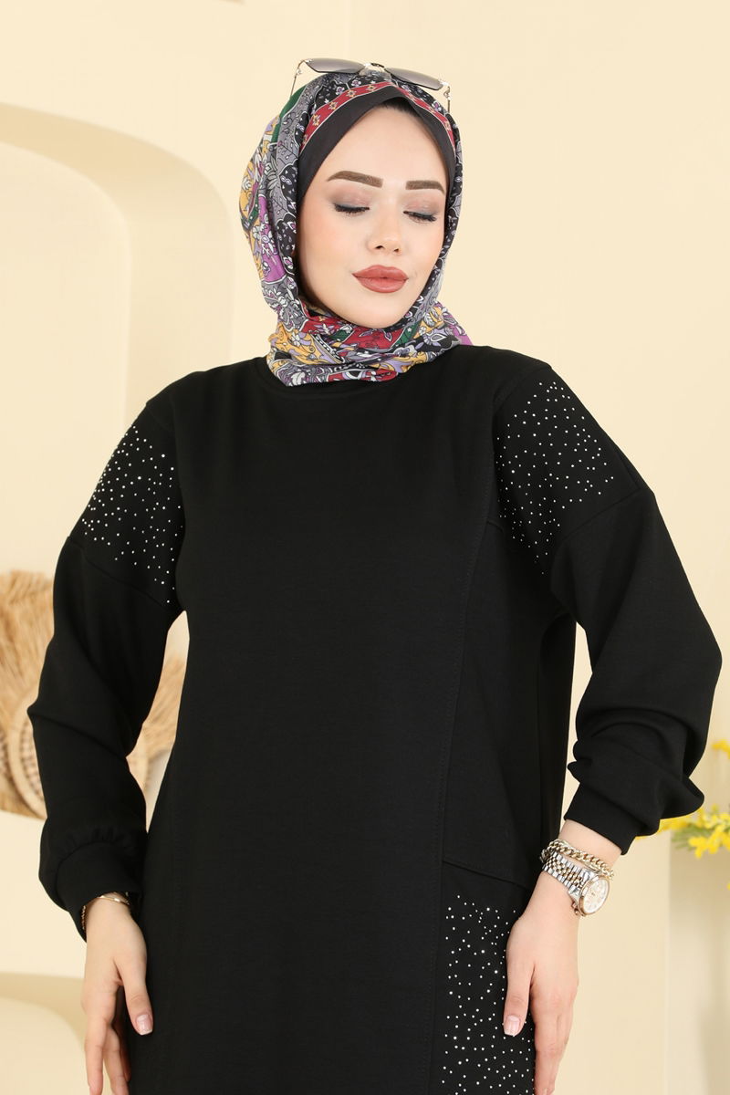 Product Feature : It is a new season hijab fashion product. The product has a Cycling collar. Unlined. The stones are glued. The waist of the trousers is elastic. There may be a tonal difference in the product due to concept photo shoots.