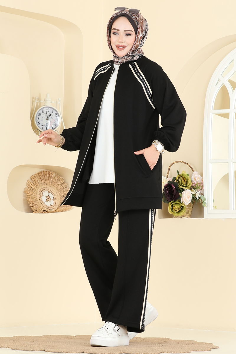 Product Feature : It is a new season hijab fashion product. The product has a Cycling collar. Unlined. The product has a zipper at the From the front part. Details are sewn. Pocket available. The waist of the trousers is elastic. There may be a tonal difference in the product due to concept photo shoots.