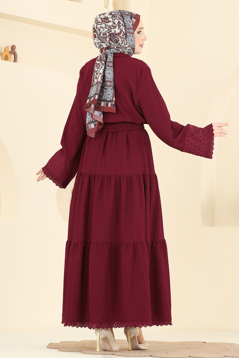Product Feature : It is a new season hijab fashion product. The product has a Shirt collar. The product has From the front buttons. Unlined. The guipure detail is sewn. The chest pocket is active. The skirt waist is elastic. There may be a tonal difference in the product due to concept photo shoots.