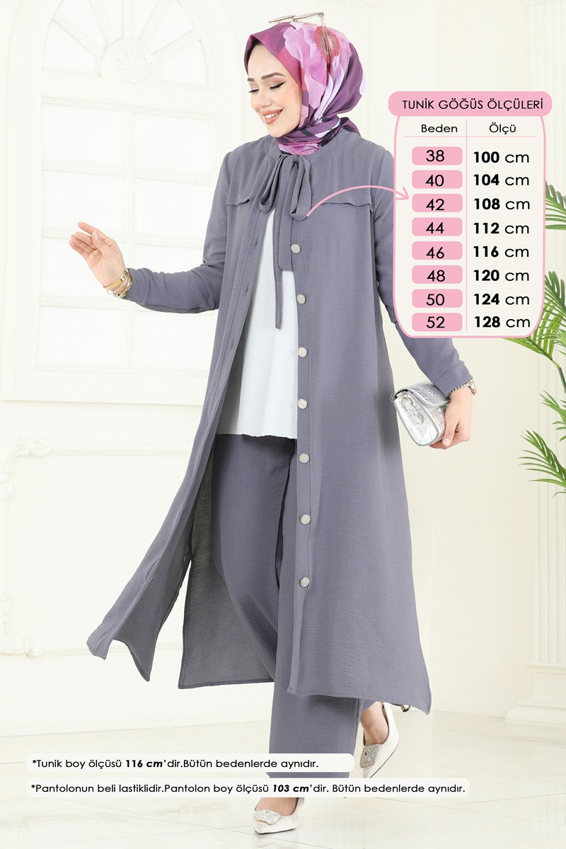 بلوز مقاسات الحجم (سم)الحجم الصدر الطول 38 100 116 40 104 116 42 108 116 44 112 116 46 116 116 48 120 116 50 124 116 52 128 116 بنطلون مقاسات الحجم (سم)الحجم الطول 38 103 40 103 42 103 44 103 46 103 48 103 50 103 52 103 الوزن(كجم):0.59 -