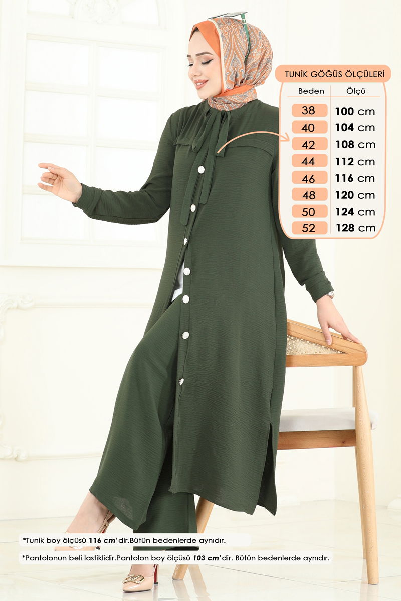 بلوز مقاسات الحجم (سم)الحجم الصدر الطول 38 100 116 40 104 116 42 108 116 44 112 116 46 116 116 48 120 116 50 124 116 52 128 116 بنطلون مقاسات الحجم (سم)الحجم الطول 38 103 40 103 42 103 44 103 46 103 48 103 50 103 52 103 الوزن(كجم):0.59 -