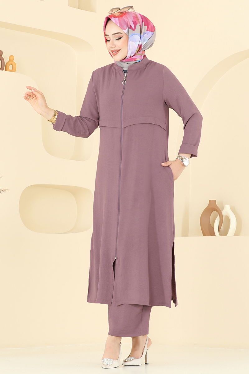 المنتج لديه ياقة نصف بيضوية. يحتوي على فتحة. غير مبطنة. المنتج به سحاب في جزء من الأمام. التفاصيل مخيطة. البلوزة غير متضمنة. صُنعت عينة من المجموعة مع البلوزة لإظهار الاستخدام المقصود للمنتج. يحتوي المنتج على جيب. خصر البنطال مرن. قد يكون هناك اختلاف في الدرجة اللونية في المنتج بسبب التقاط الصور الفوتوغرافية.