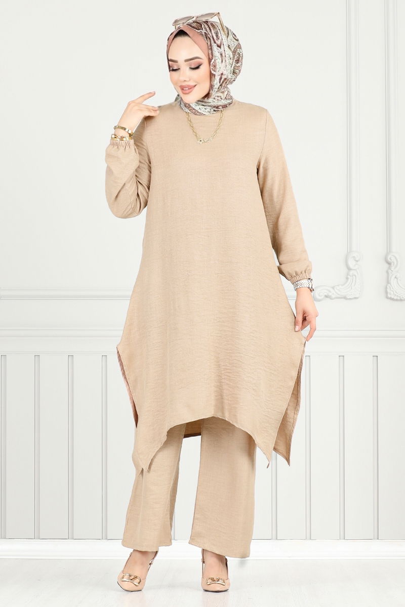 Product Feature : It is a new season hijab fashion product. It has a button that can be used from the back. The product has a Cycling collar. The tunic has a side slash.. Unlined. The waist of the trousers is elastic. The cuff is rubberized. There may be a tonal difference in the product due to concept photo shoots.