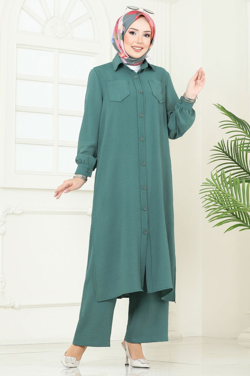 المنتج لديه ياقة القميص. المنتج به أزرار من الأمام. البلوز تحتوي على فتحة. غير مبطنة. الجيب الصدري نشط. خصر البنطال مرن. أزرار الكفة نشطة. قد يكون هناك اختلاف في الدرجة اللونية في المنتج بسبب التقاط الصور الفوتوغرافية.