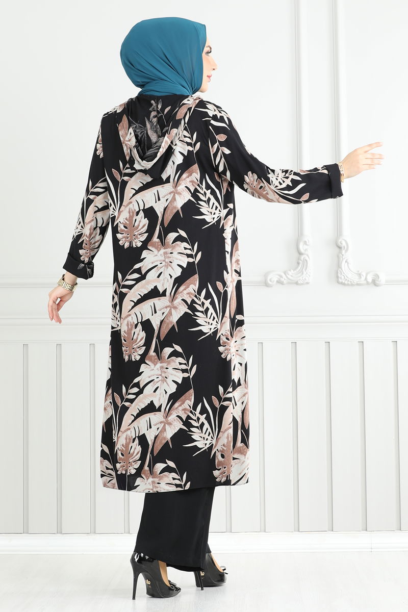 Product Feature : It is a new season hijab fashion product. It has a button that can be used from the back. The product has a Hooded collar. Unlined. The hood is sewn to the product. The inner blouse is sleeveless. The waist of the trousers is elastic. There may be a tonal difference in the product due to concept photo shoots.