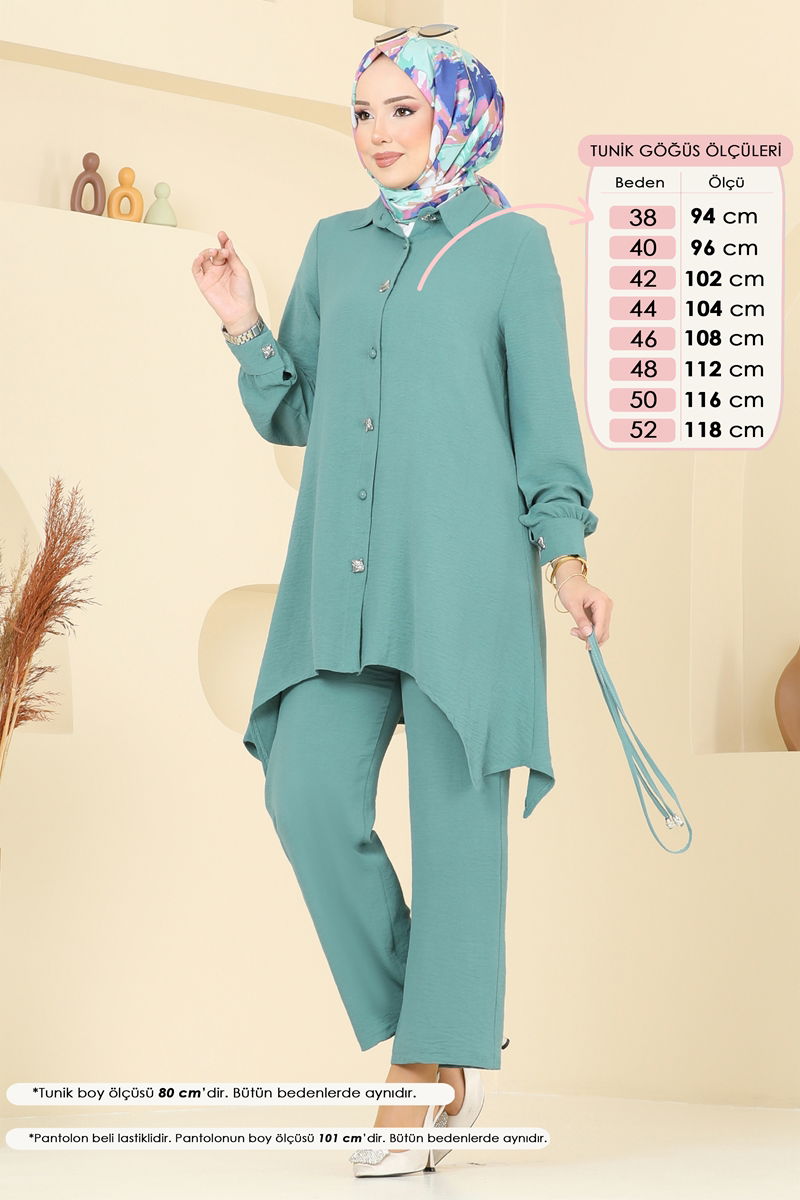 بلوز مقاسات الحجم (سم)الحجم الصدر الطول 38 94 80 40 96 80 42 102 80 44 104 80 46 108 80 48 112 80 50 116 80 52 118 80 بنطلون مقاسات الحجم (سم)الحجم الطول 38 101 40 101 42 101 44 101 46 101 48 101 50 101 52 101 الوزن(كجم):0.65 -