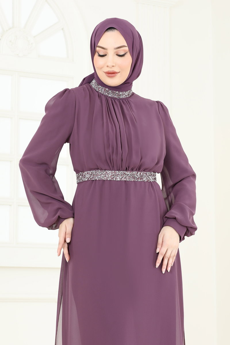 Product Feature : It is a new season hijab fashion product. The product has a Judge collar. The tunic has a side slash.. It is lined. The product has a zipper at the from the back part. The stones are glued. Belt included, optional not available. The waist of the trousers is elastic. Cuff buttons are active. There may be a tonal difference in the product due to concept photo shoots.
